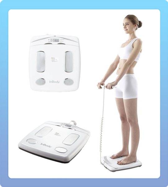 Um dos principais exames feitos para avaliação da composição corporal de forma mais completa e abrangente é a BIOIMPEDÂNCIA. Esse exame leva em consideração fatores como tecido adiposo, massa magra, taxa metabólica basal, gordura visceral e IMC.